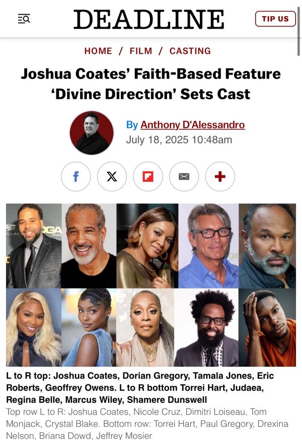 July 18th, 2025 Hollywood California -- Joshua Coates’ film Divine Direction has wrapped filming in Philadelphia, PA. The movie tells the story of a father who is also a Pastor and grapples with his faith as his son battles a rare form of kidney cancer. Divine Direction is based on the heartfelt true-life story of Charles Moorer and based on his two books Standing on the Word of Adoni and Giving Up Is Not an Option.